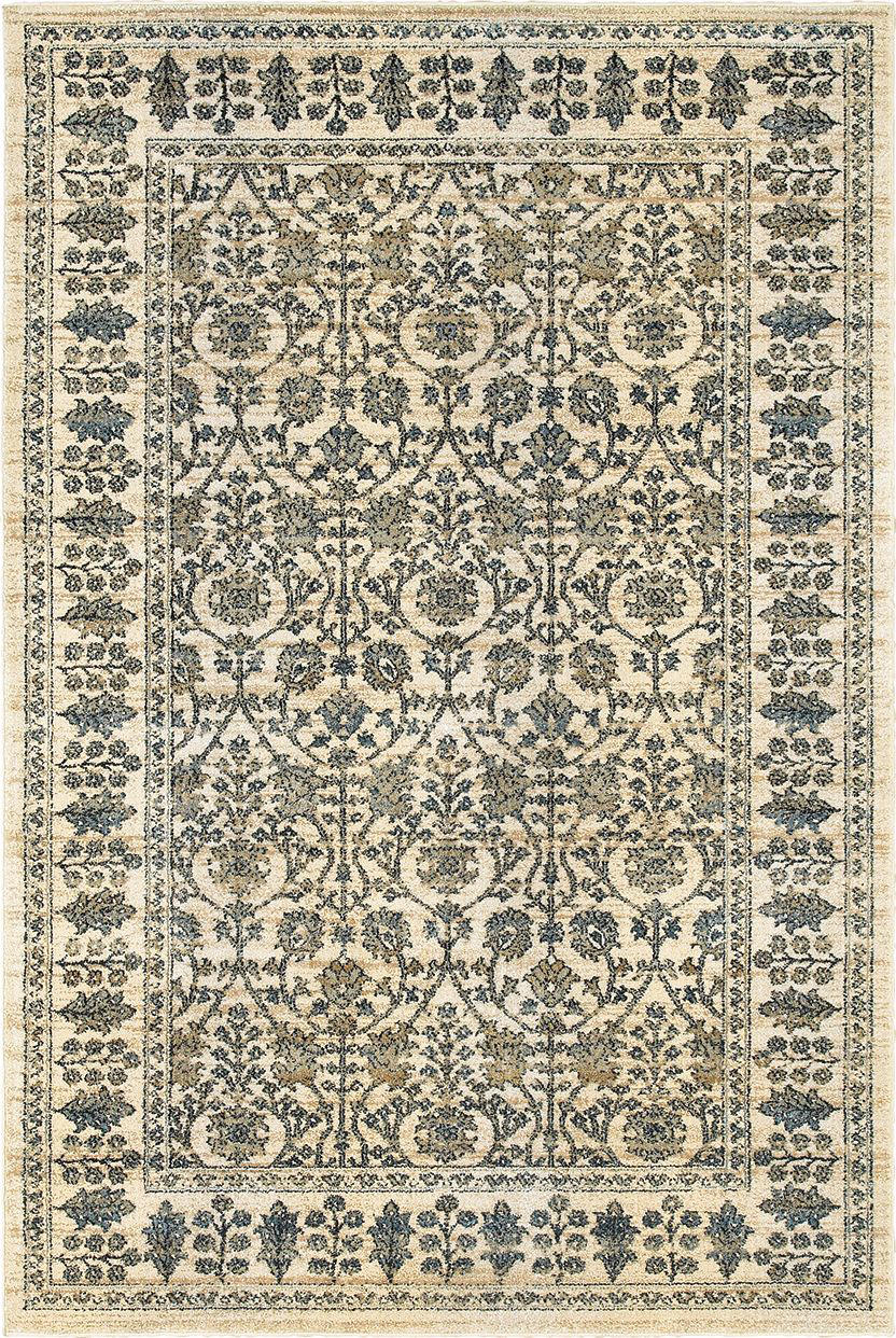 Oriental weavers empire 501u ivory blue area rug the empire collection boasts textured yarn in a super soft blend of polypropylene and polyester.